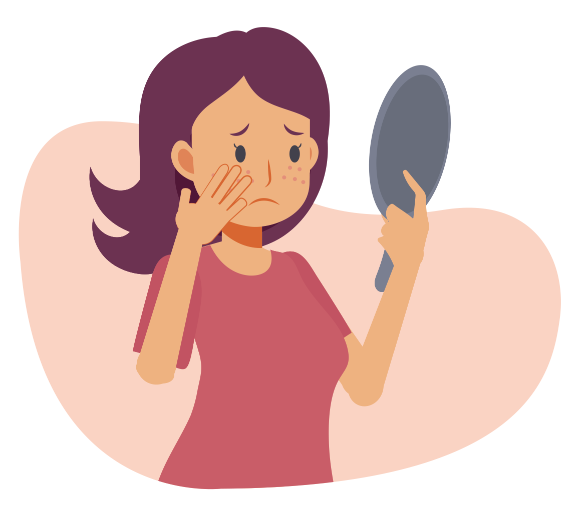 | Älä nypi tai puristele näppyjä. Tämä voi johtaa tulehdukseen, joka voi aiheuttaa arpia. |