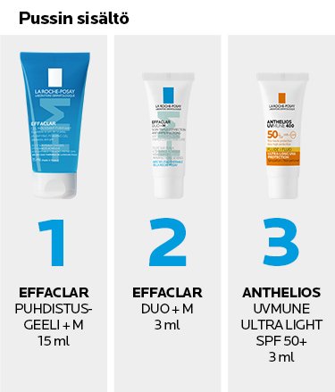| Noudata johdonmukaista ihonhoitorutiinia akneen taipuvaisella iholla: | |